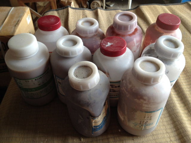d鉄系【鉄赤(しがらき釉薬)1.3kg T-439黒天目(信楽工組)1.6kg T-452ソバ(信楽工組)1.5kg 赤萩(しがらき釉薬)1.4kg 茶そば(しがらき釉薬)0.3kg SC-410油滴天目1.6kg 茶あめ1.3kg 赤結晶0.8kg アメ※怪しい1.3kg 柿釉※怪しい1.3kg】 4,000円/セット(税込)