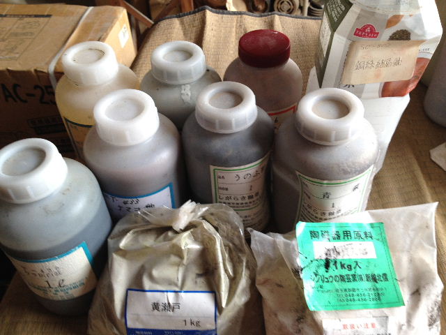 g【亀甲貫入(シンリュウ)粉末1kg 黄瀬戸'(光洋商会)粉末0.9kg 青萩(しがらき釉薬)1.1kg うのふ(しがらき釉薬)0.7kg T-428ワラ灰白萩(信楽工組)1.3kg T-437ナマコ(信楽工組)1.7kg T-938銅結晶(信楽工組)0.8kg T-949パールラスター(信楽工組)1.7kg M-126志野(丸二陶料)0.8kg】 4,000円/セット(税込)