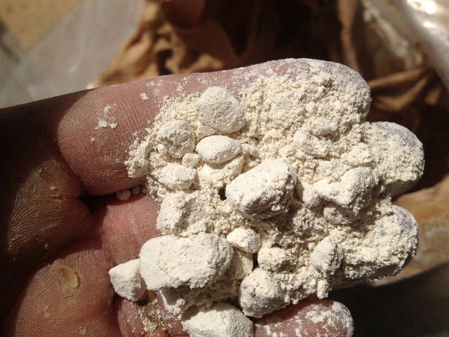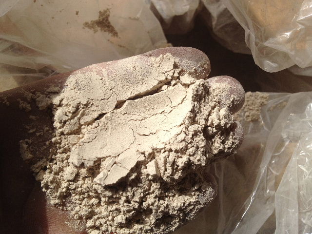 粒度は1mm程度。本来素地として使うものなので、釉薬原料として使うには篩い分けが必要。